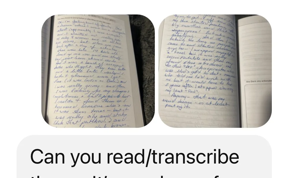 If you journal your dreams by hand, snap a clear photo (or two or three) which you can use to have your AI of choice (like ChatGPT) transcribe for you.